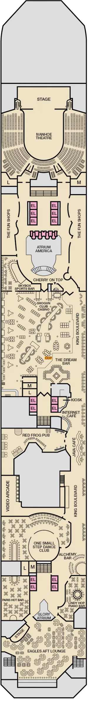 Hours: Breakfast, Lunch and Dinner, may vary per ship, ask onboard staff for accurate information RedFrog Pub