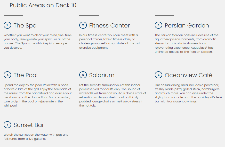 Hours: may vary per ship, ask onboard staff for accurate information AquaSpa Cafe