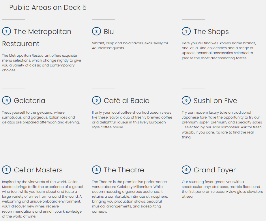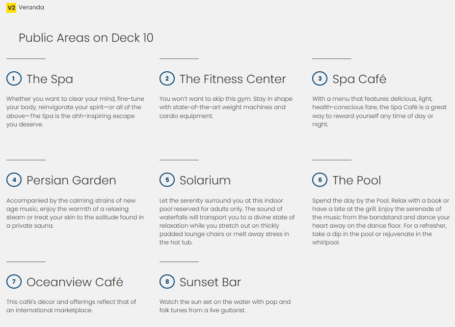 Hours: may vary per ship, ask onboard staff for accurate information AquaSpa Cafe