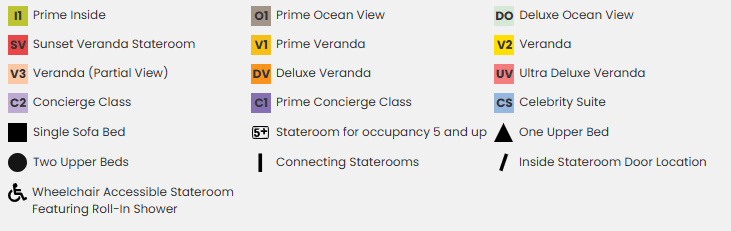 Suite Class Staterooms: $19.00 per person, per day.